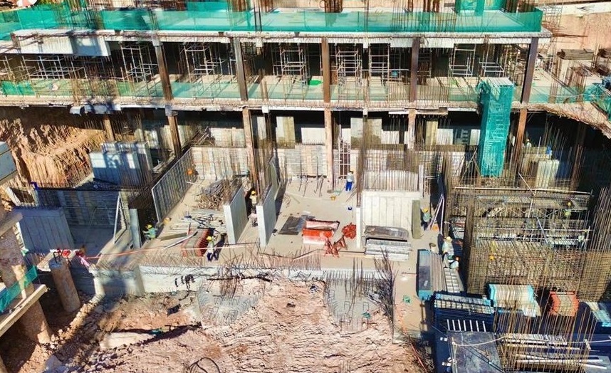 Giai đoạn nền móng: Dự án đã hoàn thành hạng mục cọc móng và hệ thống hầm ngầm kiên cố, đảm bảo các tiêu chuẩn kỹ thuật khắt khe nhất. Đây là bước đệm quan trọng khẳng định sự vững chãi của toàn bộ 6 block cao tầng.